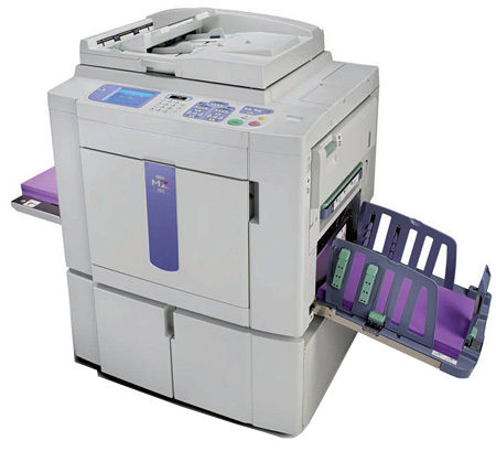 Ризография — печать с использованием печатной формы, изготовленной проплавлением термоголовкой микроотверстий в полимерном слое формного материала (мастер-плёнке) для образования печатающих элементов. Ризографию используют для оперативного размножения на бумаге одноцветного или многоцветного изображения (полноцветная печать невозможна). Этот способ экономически эффективен при печати продукции небольшими тиражами (от 20 до 1000 экз.). При сильном увеличении можно увидеть, что штрихи на оттиске состоят из точек и напоминают пунктирные линии. В качестве оригиналов могут быть использованы бумажные документы или файлы. Ризограф допускает использование как белой так и цветной бумаги, преимущественно используется офсетная бумага без покрытия плотностью 80 или 160 г. Использование мелованной бумаги не рекомендовано. Основные преимущества перед лазерной и струйной печатью является низкая стоимость отпечатка, высокая скорость копирования, но низкое качество отпечатков. Печатать фотографии и картинки даже на цветном Riso ComColor не гарантирует высокого качества печати. Цветной ризограф ComColor работает по типу струйной печати с использованием 4 туб краски. Очень специфичный вид копировальной техники. Для чего тогда нужен ризограф: Он представляет собой аппарат, действующий по принципу роторной трафаретной печати. Предназначен для изготовления монохромных и цветных изображений. Область применения ризографа достаточно широка. На нем печатают: листовки, бланки, рекламные буклеты, ведомости, этикетки; визитки; учебники, методички, брошюры с научными работами; материалы для массовой рассылки или раздачи; сопроводительную документацию к технике, гарантийные и технические талоны; медицинские бланки – карточки, рецепты, справки. Виды и марки ризографов По формату ризографы делят на крупно- и малоформатные (А4,В4 и А3). Малоформатные машины с небольшим разрешением отлично подходят для печати бланков или текстовых документов. Наличие интерфейса и возможность компьютерного создания матрицы существенно снижает потери информации и выводит качество печати на более высокий уровень. По типу сканирования существуют планшетные и барабанные (протяжные) дупликаторы. Аппараты с протяжным сканером дают не очень качественное изображение. В них сам сканер неподвижен, протягивается оригинал-макет, что искажает картинку. Планшетный сканер дает лучший результат за счет того, что сканер движется вдоль оригинал-макета. Производители Duplo – цифровые ризографы этой марки имеют большой рабочий ресурс, высокую производительность и достойное качество печати. Ricoh – компания, которая занимается совершенствованием технологии получения качественных цветных изображений. Компания Ricoh лояльна к совместимым расходным материалам и не ставит микрочипы на свои фирменные тубы с чернилами, позволяя производить повторную заправку даже краской другой фирмы. Rex-Rotary и Nashuatec входят в состав группы NRG вместе с компанией Ricoh и продвигают ее продукцию под своими брендами. Riso Kagaku Corporation, по мнению потребителей, самая популярная и надежная марка. Riso первыми начали поставлять дупликаторы в Россию и до сих пор не сдают своих позиций. Именно они впервые еще в 1986 году применили электронно-цифровое изготовление мастер-пленки, что позволило максимально улучшить качество печати. Р